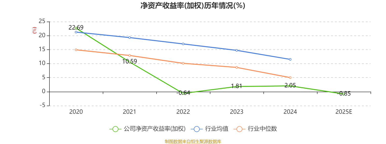 数据显示,2025年公司加权平均净资产收益率为-0.85%,较上年同期下降2.9个百分点。